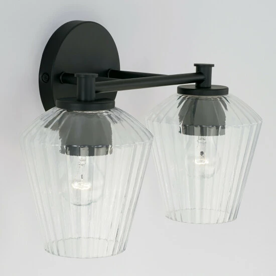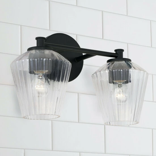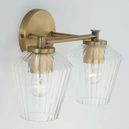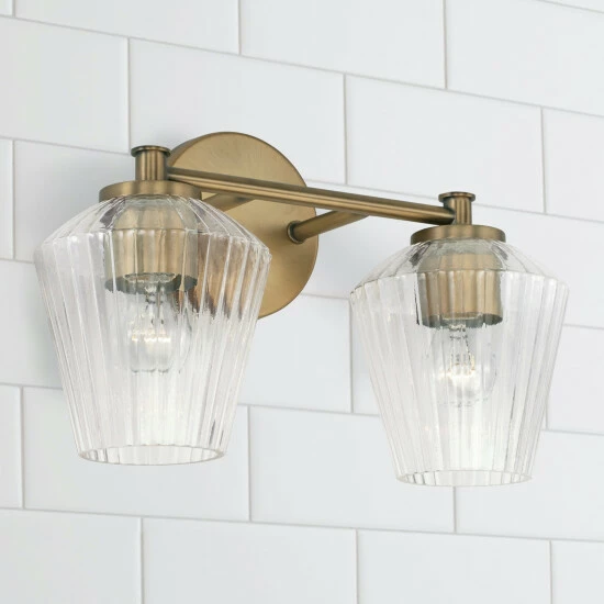 The architectural detailing of the fluted glass of this 2-light vanity creates brilliant shine for a luxe look that is effortlessly elegant. This fixture is available in multiple finishes and as a 3-light or 4-light.