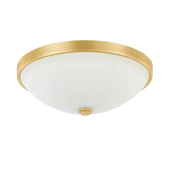 This 2-light flush mount fixture features a capital gold finish that will complement many traditional decors. The soft white glass bowl softens the light creating an inviting atmosphere and completes this simple yet functional design.