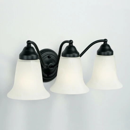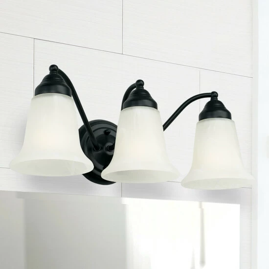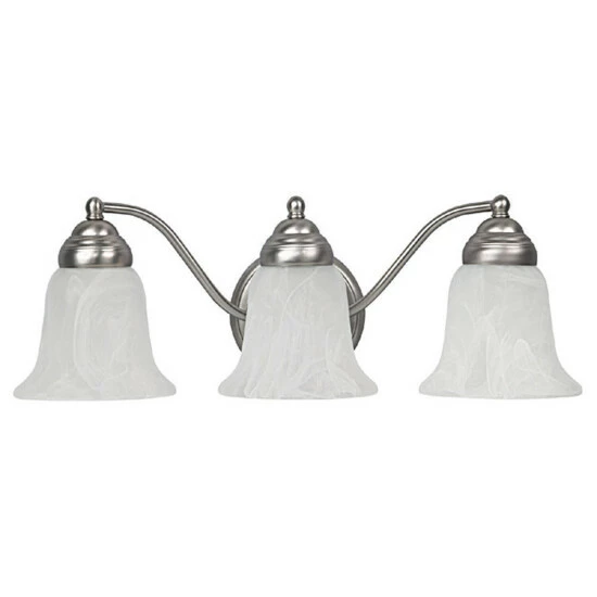 Traditional and timeless, the 3-light Alabaster vanity has evokes classic charm. Multiple finish options make this fixture easy to use with a variety of styles. Vanity is also available in a 2-Light option.