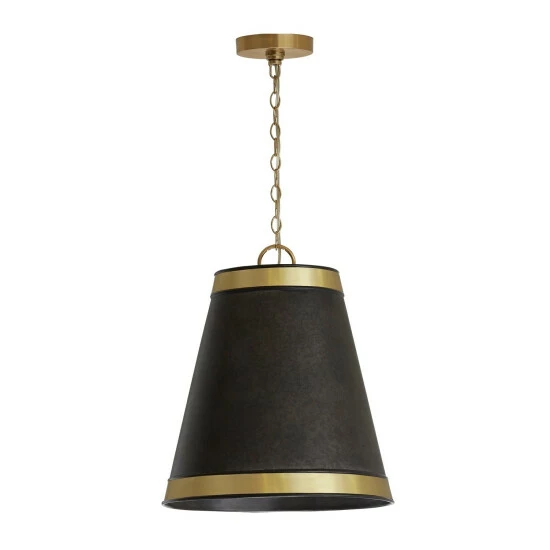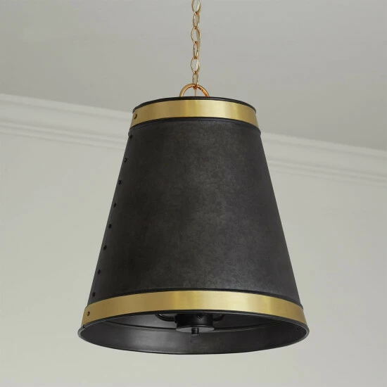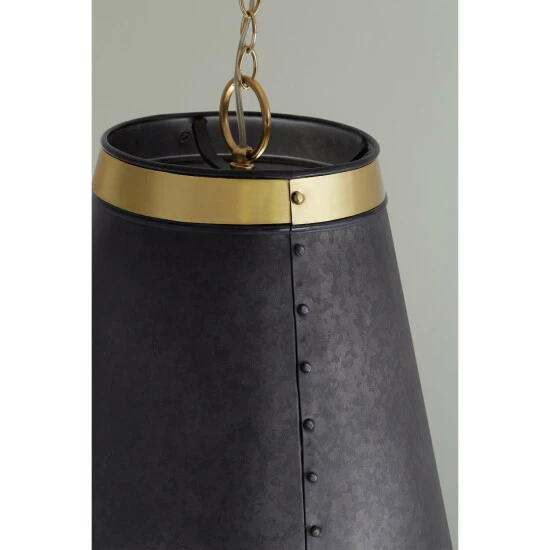 This 3-light hanging pendant features a beautifully hand galvanized black finish that will complement many farmhouse, rustic, and industrial decors throughout your home. The clean lines of the metal frame along with the true brass trim, add interest, completing this simple yet functional design.