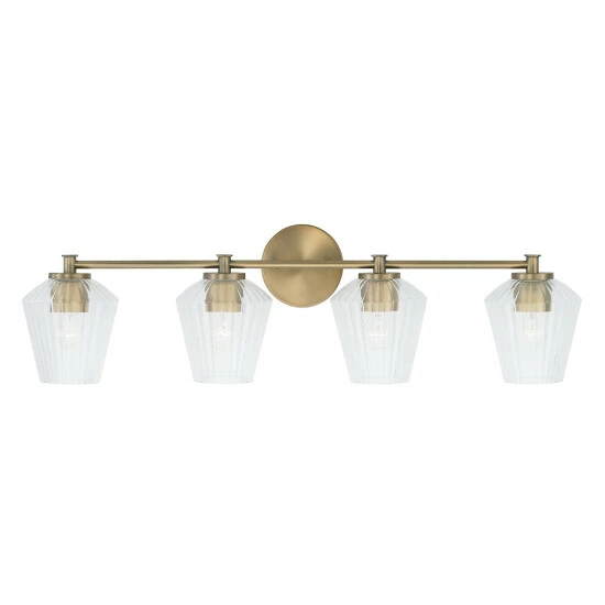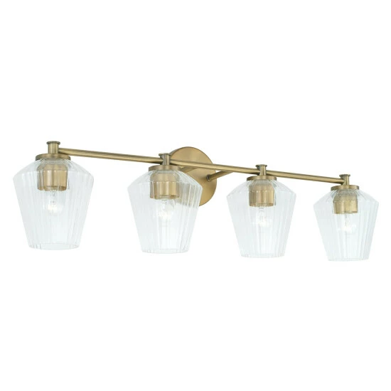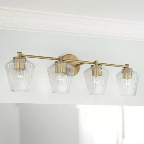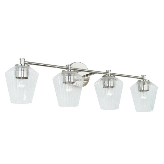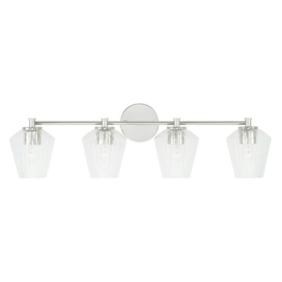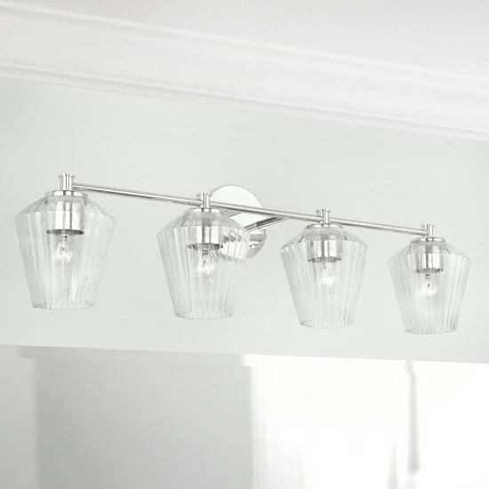 The architectural detailing of the fluted glass of this 4-light vanity creates brilliant shine for a luxe look that is effortlessly elegant. This fixture is available in multiple finishes and as well as a 2-light or 3-light.