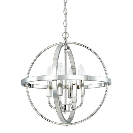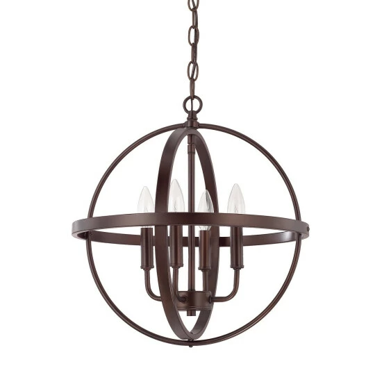 This 4-light hanging pendant is available in 6 beautiful finishes. The aged brass, brushed nickel, bronze, matte black, polished nickel, or winter gold finishes will complement a variety of decors throughout your home. The clean lines of the steel frame add interest while the exposed bulbs provide ample light to many spaces.
