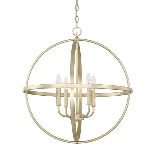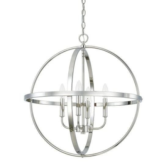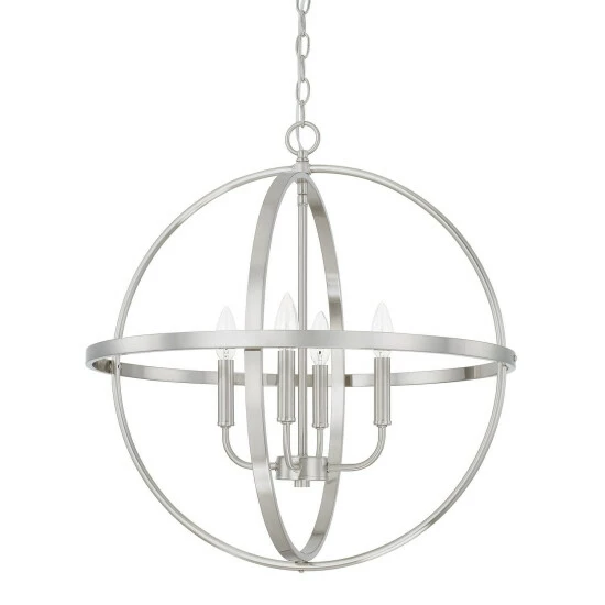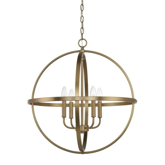 This 4-light hanging pendant is available in 6 beautiful finishes. The aged brass, brushed nickel, bronze, matte black, polished nickel, or winter gold finishes will complement a variety of decors throughout your home. The clean lines of the steel frame add interest while the exposed bulbs provide ample light to many spaces.