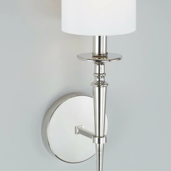 The dramatic candlestick detailing on the Abbie collection one (1) light sconce brings a glamourous nod to this updated design.