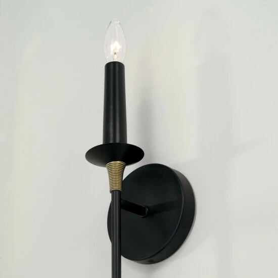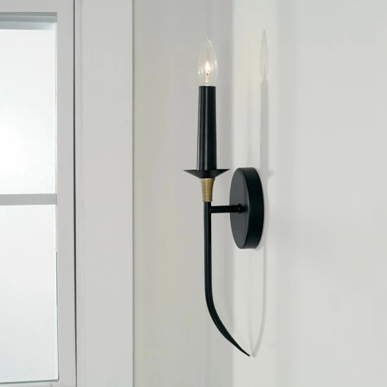 A sharply tapered curve and designer details dial up the drama with the Amara Sconce. TheΒ wrapped accent in a brass tone adds a layer of unexpected dimension and the Matte Black finish punctuates the personality of any space.