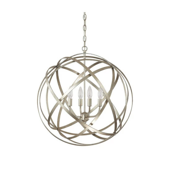 This Axis collection 4-light pendant features a beautifully handpainted winter gold finish that will complement many urban, loft,transitional and even modern decors. The simple yet elegant globedesign will complete the look of any room in your home. CapitalLighting is a family owned business just outside Atlanta, Georgia.We pride ourselves by delivering high quality products ataffordable pricing. Beginning with design concepts from popularhome fashions, we transform our ideas into lighting fixtures thatblend timeless beauty with today’s styling. From casting andforging to the hand painted finishes and fine details we strive tomake our products the finest in the industry. This piece includes120 inches of chain and 180 inches of wire so it can be hung atyour desired height. Dimensions: 23.5 inches high x 23 inchdiameter.
