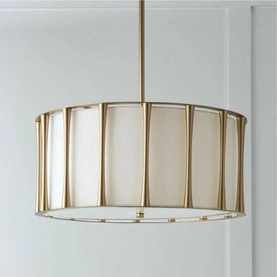Soft and statement making, the Bodie Pendant adds a layerΒ of luxury to any space. The tapered columns frame the tailored fabric shade, creating a sophisticatedΒ luminaireΒ to matchΒ yourΒ style.