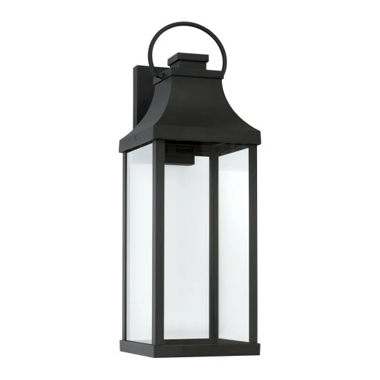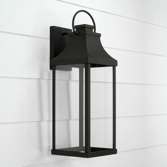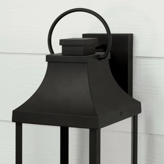 Transitional meets modern with the Bradford Low Light Large Wall Lantern. The bold lines and an oversized ring adds classic curb appeal to your home. This fixture is designed for minimal light emissions and is part of our Rain or Shine Collection and backed by our five-year warranty.