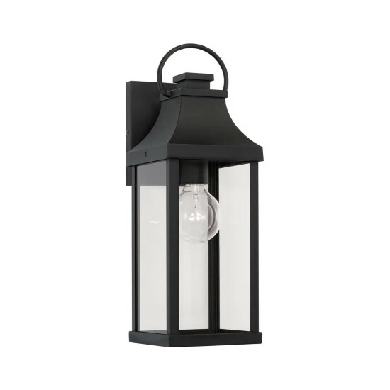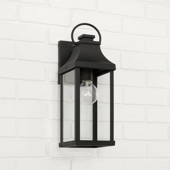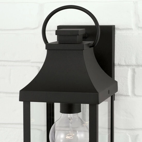 Transitional meets modern with the Bradford Small Wall Lantern. The bold lines and an oversized ring adds classic curb appeal to your home. This fixture is designed for minimal light emissions and is part of ourย Rain or Shine Collection and backed by our five-year warranty.