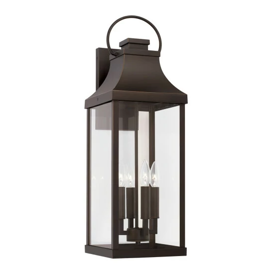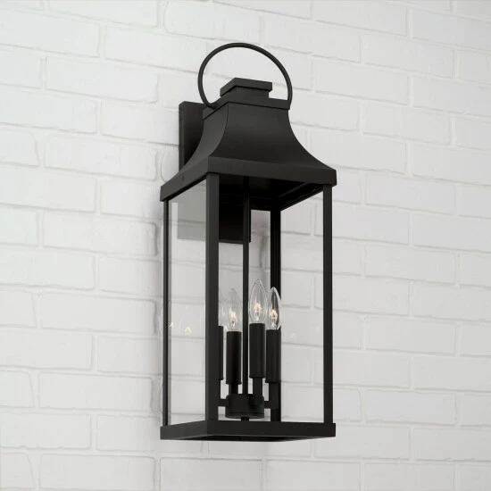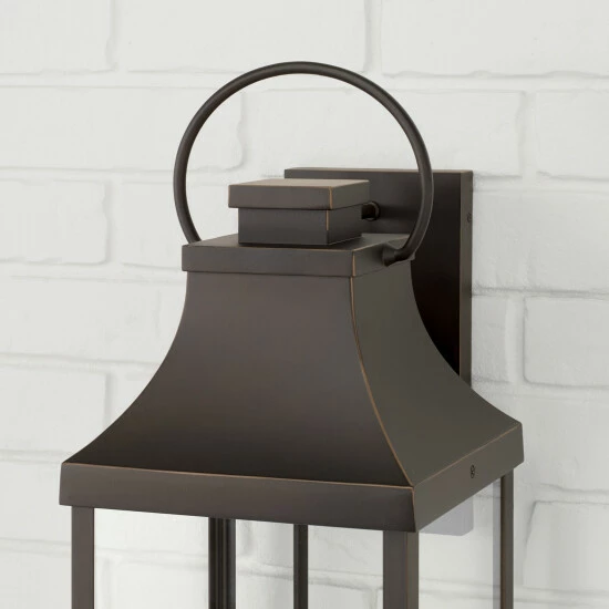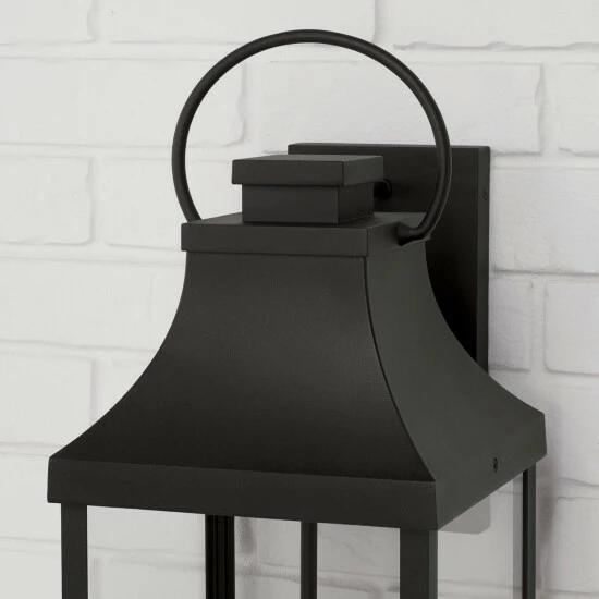 Transitional meets modern with the Bradford Extra Large Wall Lantern. The bold lines and an oversized ring adds classic curb appeal to your home. This fixture is designed for minimal light emissions and is part of ourย Rain or Shine Collection and backed by our five-year warranty.