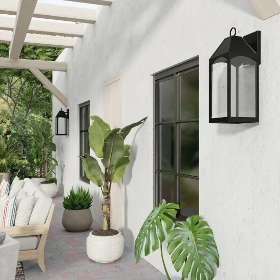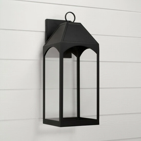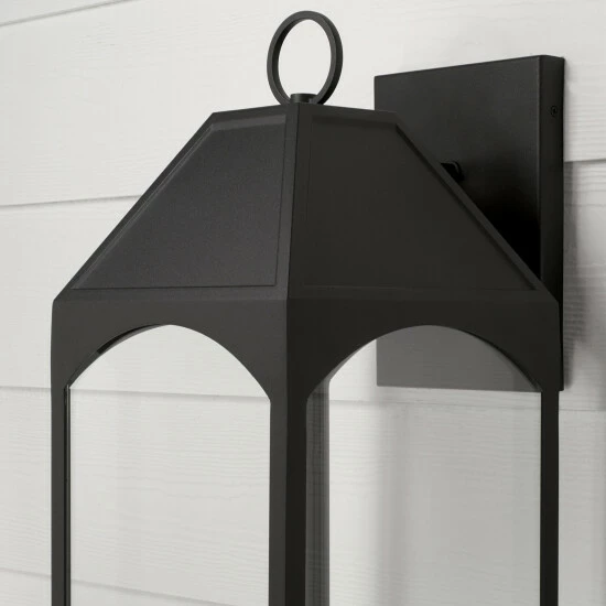 Enhance your exterior with the Burton Low Light Large Wall Lantern. The arched panes and tented top in a Black finish beautifully blend classic style with modern appeal. This fixture is designed for minimal light emissions and is part of ourΒ Rain or Shine Collection and backed by our five-year warranty.