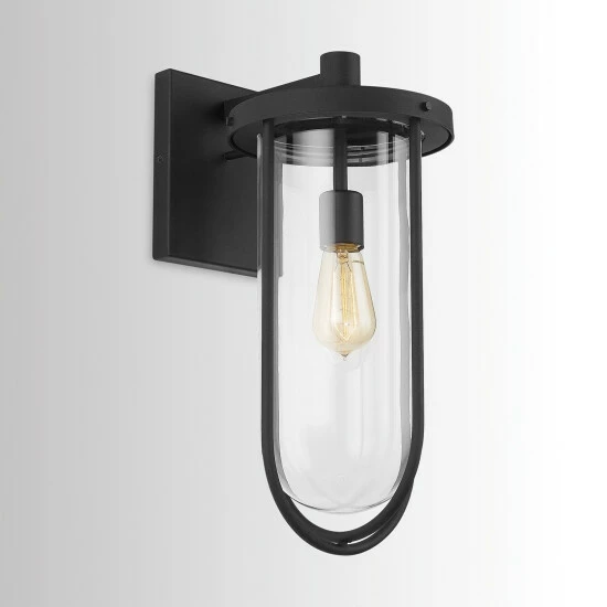 This 1-light outdoor wall lantern from the Corbin collection, features a black finish that complements many industrial, farmhouse, and rustic outdoor decors. The clean lines of the aluminum frame add interest while the clear glass provides uninterrupted light to help highlight your outdoor decor.