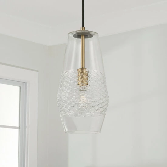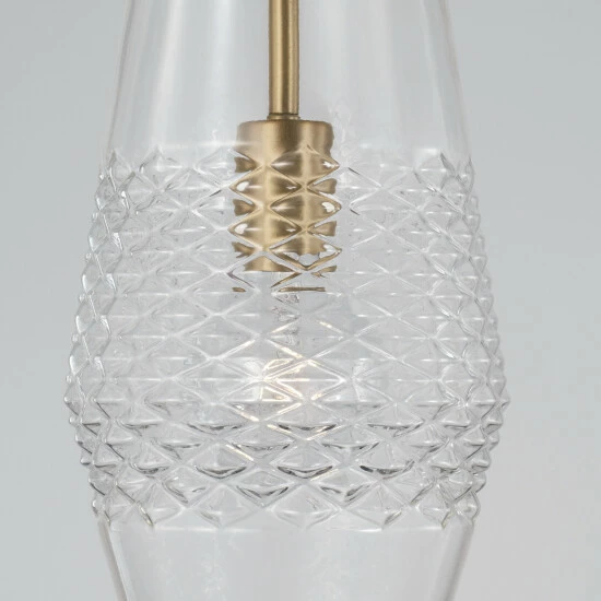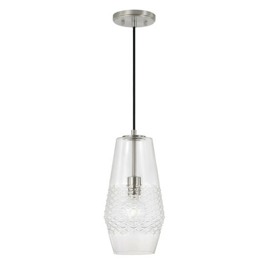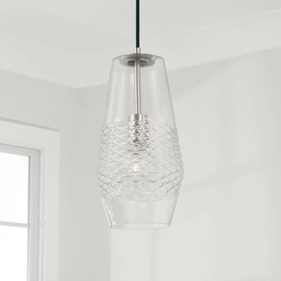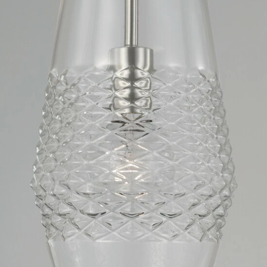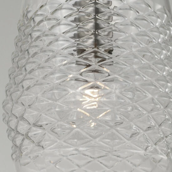 Reminiscent of heirloom glassware, the Dena Pendant brings a retroΒ revival to any space. The diamond embossed glass gives a look that sparkles and shines.