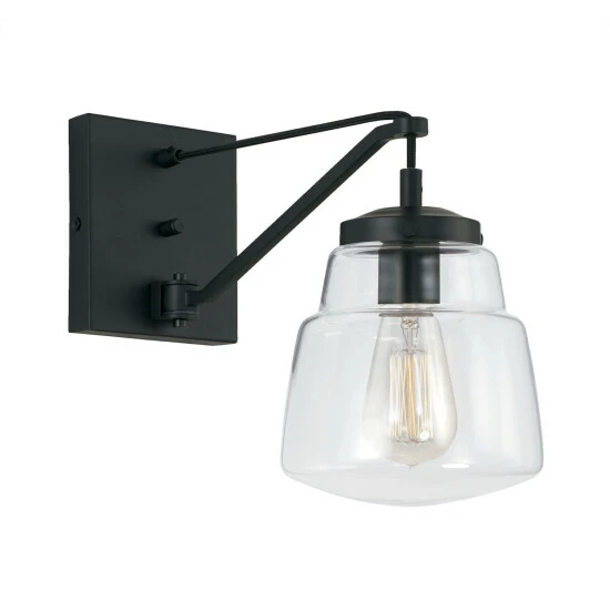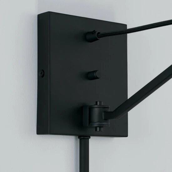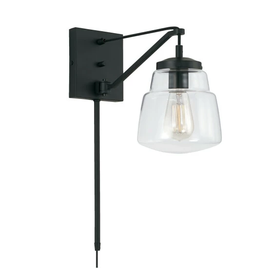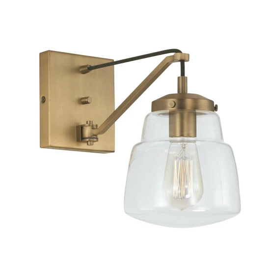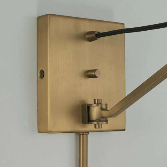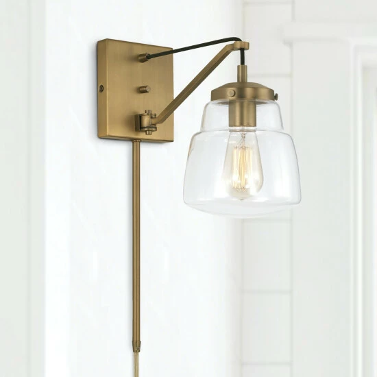 - Applications: Rated for dry locations, perfect for a hallway/stairway, foyer/entryway, kitchen, home office, dining room, living room or bedroom. A worldly fusion of strong Aged Brass armature or Matte Black with softer schoolhouse influences features an adjustable hinge arm and braided black cord.