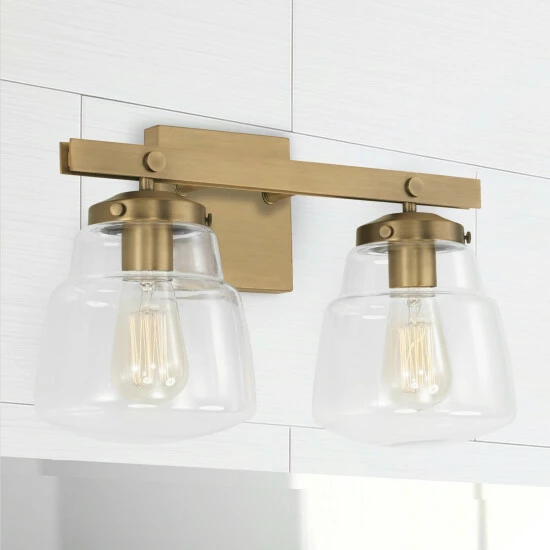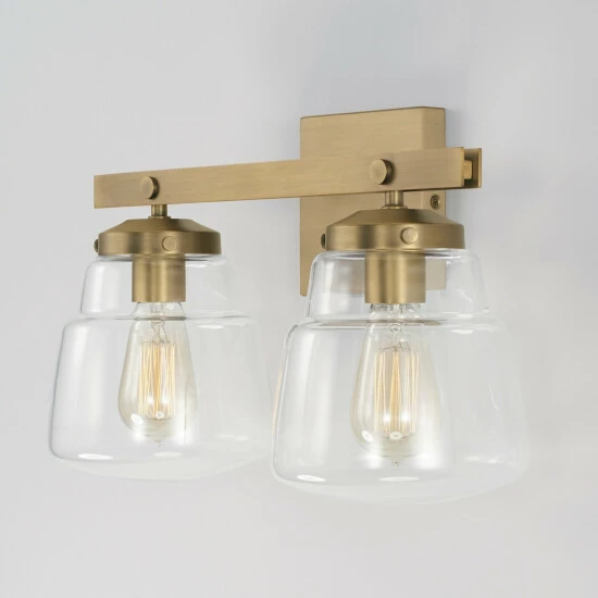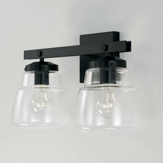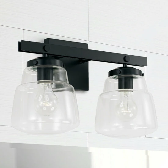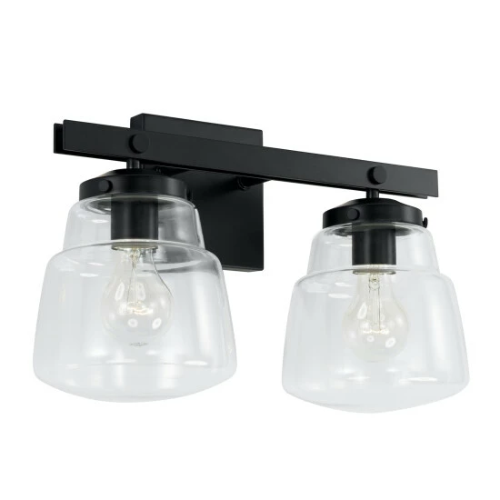 With a fresh spin on diner-inspired glass, the Dillon collection 2-light vanity brings a refined retro vibe to any space. The beautifully hand painted finish accents the pronounced rivet details and sculptural silhouette.
