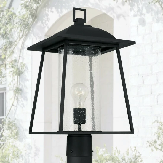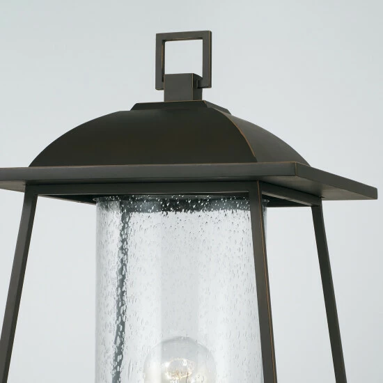 The contrast of a detailed, beveled dome and a tapered, minimalist frame in the Durham collection is a masterful mix of modern and traditional. The simple silhouette accentuates the hurricane-style seeded glass shade. These fixtures are part of our Rain or Shine collection and are backed by our five-year warranty.