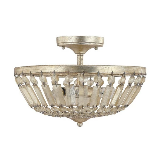 This Fifth Avenue collection 3-light semi flush mount light features a beautifully hand painted winter gold finish that will complement many transitional decors. The crystal accents add interest and complete the look of this unique piece. Capital Lighting is a family owned business just outside Atlanta, Georgia. We pride ourselves by delivering high quality products at affordable pricing. Beginning with design concepts from popular home fashions, we transform our ideas into lighting fixtures that blend timeless beauty with today’s styling. From casting and forging to the hand painted finishes and fine details we strive to make our products the finest in the industry. Dimensions: 9.5 inches high x 14 inch diameter.