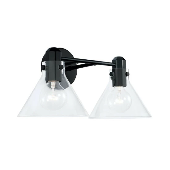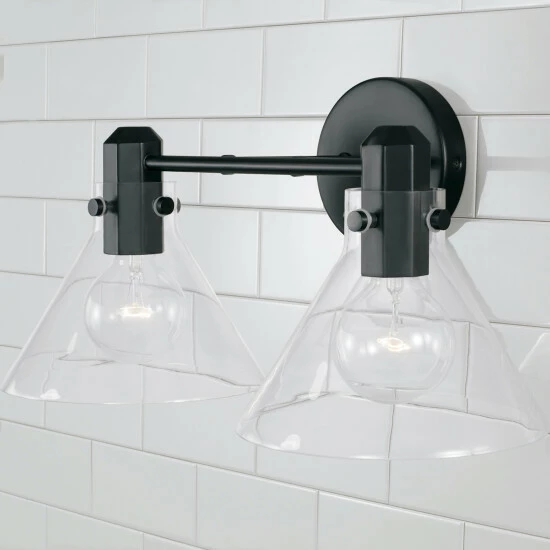 A modern take on midcentury style, the Greer 2-Light Vanity brings understated style to any bathroom. The faceted socket and rivet details adds a pop of personality to the tapered glass. Also available in a 3-Light.