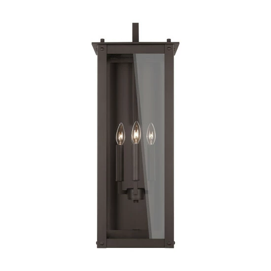 This 4-light outdoor wall lantern from the Hunt collection, features an oiled bronze finish that complements many industrial and urban outdoor decors. The clean lines of the aluminum frame add interest while the clear glass panels provide uninterrupted light to help highlight your outdoor decor.