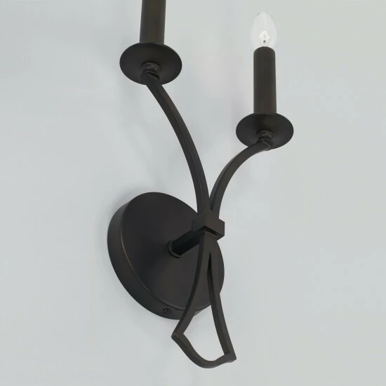 - Applications: Rated for dry locations, perfect for a hallway/stairway, foyer/entryway, kitchen, home office, dining room, living room or bedroom. Gracefully arcing old bronze arms feature a stylized finial on this dual lamp sconce.
