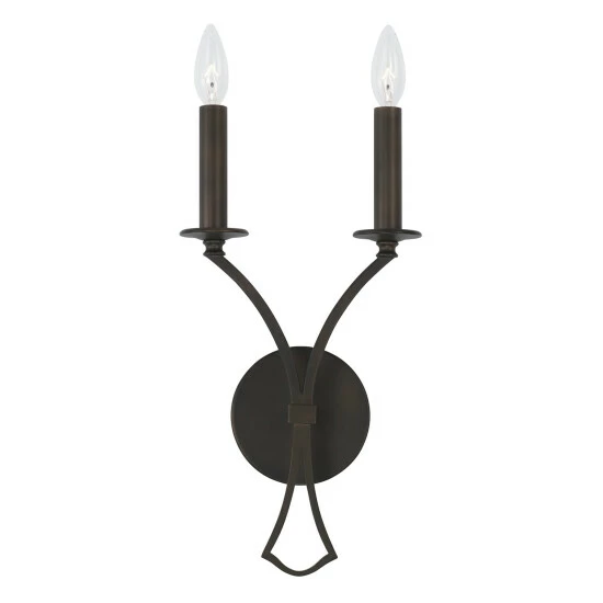 Inspired by turn-of-the-century style, the Jaymes collection two (2) light wall sconce features bold architectural loop detailing. The Old Bronze finish brings timeless character to the simple, transitional silhouette.