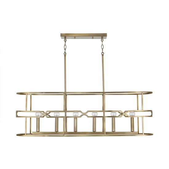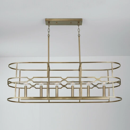 Architectural detailing in the 6-Light Island blends an Art Deco aesthetic with a graphic, modern twist. The iconic, European-inspired trellis pattern combined with an open, airy design create a refined style statement.