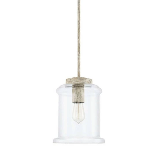 Decorate your dining area with the minimalist and coastal-theme flair of this charming single-light pendant. Part of the Kayla collection, this fixture presents a hand-painted mystic sand finish matched with the elegant silhouette of its clear glass shade, creating a beach-inspired vibe while ensuring free-flowing, multi-directional illumination.