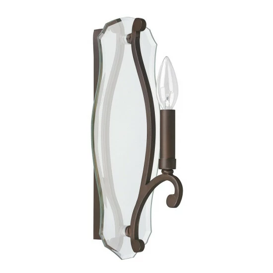 This Leigh collection 1-light wall sconce features a beautiful hand painted burnished bronze finish that will complement many transitional decors. The crystal back plate adds interest and completes the look of this simple but elegant piece. Capital Lighting is a family owned business just outside Atlanta, Georgia. We pride ourselves by delivering high quality products at affordable pricing. Beginning with design concepts from popular home fashions, we transform our ideas into lighting fixtures that blend timeless beauty with today’s styling. From casting and forging to the hand painted finishes and fine details we strive to make our products the finest in the industry. Dimensions: 14 inches high x 5.75 inches wide x 5.125 inches deep.