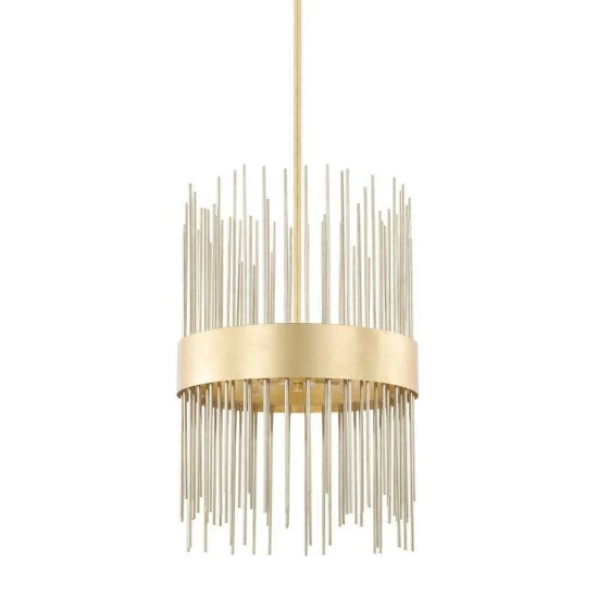This Lena collection 4-light pendant features a beautifully hand painted Fire and Ice finish that will complement many mid-century modern decors throughout your home. The clean lines of the frame add interest while the highly reflective polished nickel rods that extend above and below bring a unique look to any space.