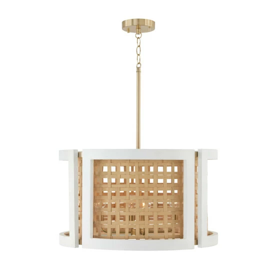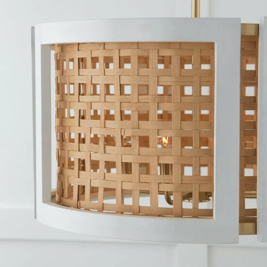 A modern mix of coastal and luxe styles, the Lola Pendant beautifully blends natural materials. The Flat White painted frame is crafted of mango wood and pairs perfectly with the warm tonesΒ of the woven rattan while the Matte Brass finish details add a subtle touch of glamour creating a captivating contrast.