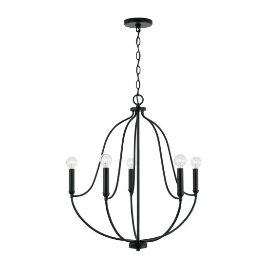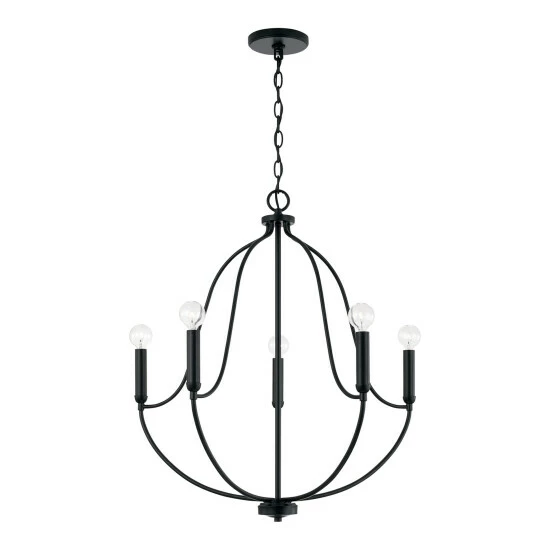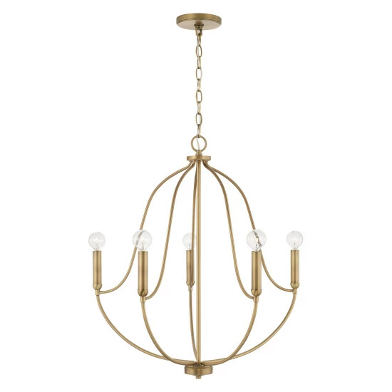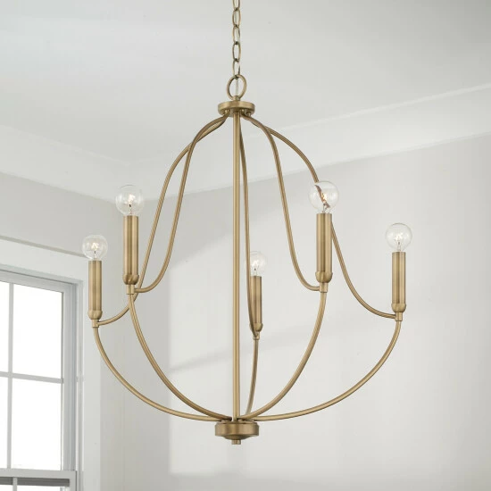 Chic curves and clean lines create the Madison 5-Light Chandelier for Homeplace. The available finishes add warmth and accents the airy silhouette for standout style.