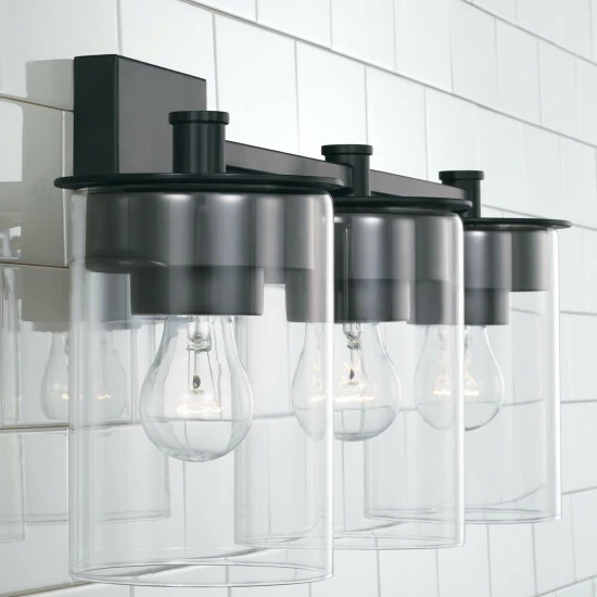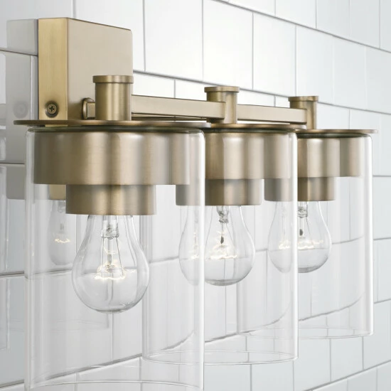 Clean lines and modern forms create the Mason 3-Light Bath/ Vanity for Homeplace. The finish accents the designer details and adds warmth to any bathroom. Also available in a 2-Light or 4-Light.