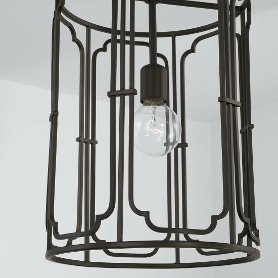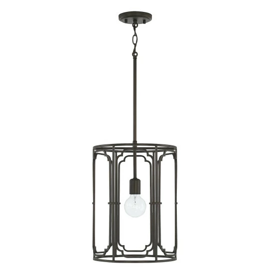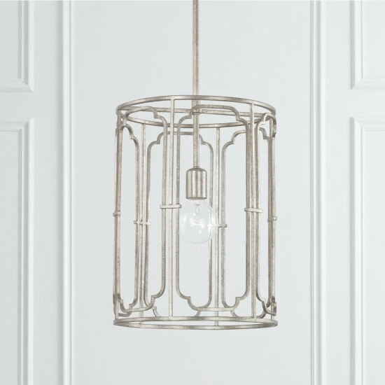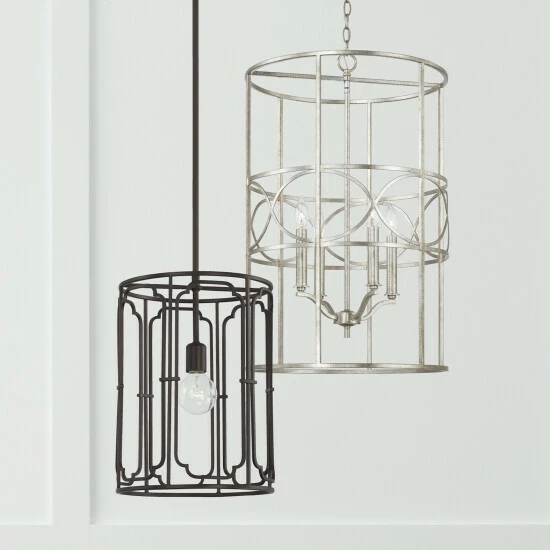 - Applications: Rated for dry locations, perfect for a hallway/stairway, foyer/entryway, kitchen, home office, dining room, living room or bedroom. The gorgeous finishes on this cylindrical metal pendant is surrounded with artistic details.