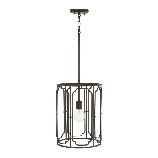 A simple, bold frame holds the delicate, sophisticated quatrefoil-inspired pattern of the Merrick collection 1-light pendant. The beautiful finishes add a touch of character and elegance to the airy design.