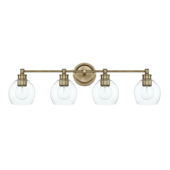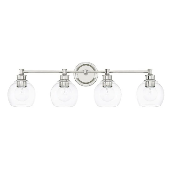 Balancing form and function, our Mid-Century 4-light vanity gives off subtle hints of character with minimal ornamentation. A beveled backplate lends a little depth to its linear form while rounded glass shades curve ever so slightly at the base to create graceful contours. These fine touches combined with the available finishes make this light fixture a welcome addition to any bath.