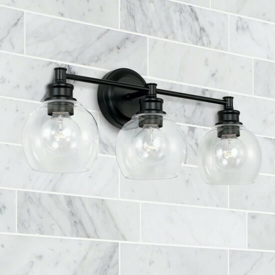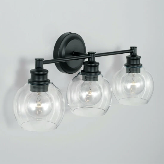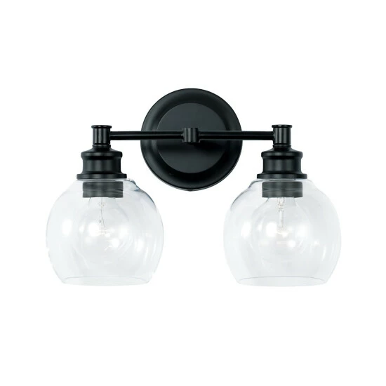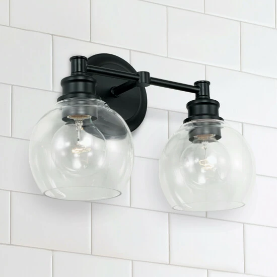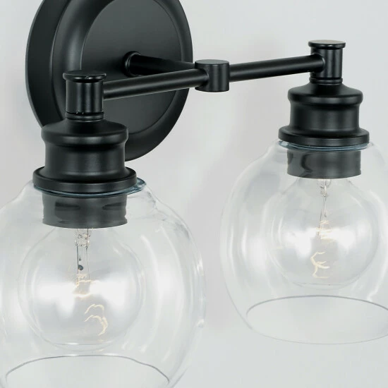 Subtle details enrich the minimalistic design of our Mid-Century collection 2-light vanity. These include gracefully contoured glass shades and the stepped detailing on the backplate, details that make it perfect for modern interiors. A Matte Black finish offers contrast and is easy to coordinate with faucets and other bath fixtures.