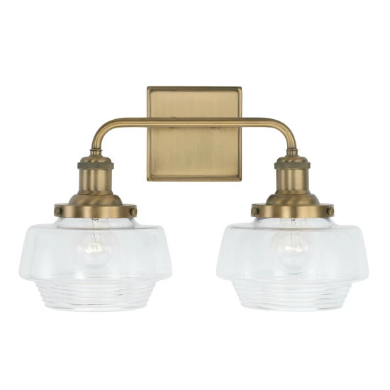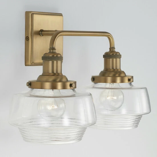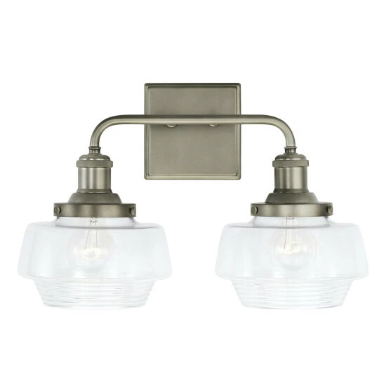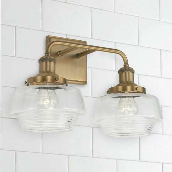 A modern update to the schoolhouse shade, the Miller collection 2-light vanity feels both classic and contemporary. The ribbed glass detail creates a layer of visual interest and accents the finish for a unique glow. This fixture is also available as a 3-light.