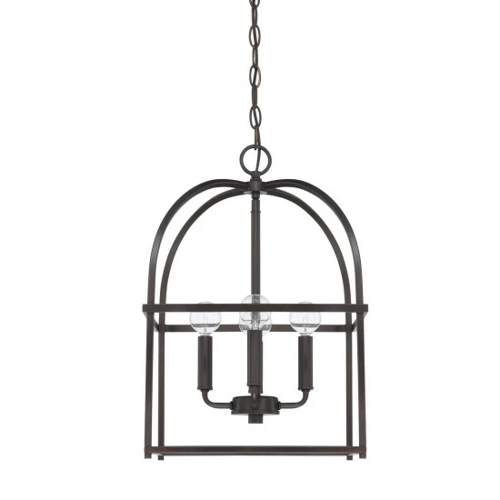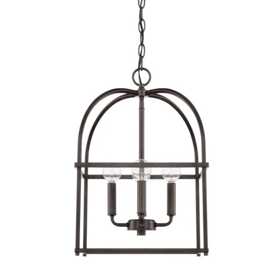 This fabulous four-light hanging foyer pendant is available in four beautiful finishes. The variety of looks will complement a variety of spaces, as the clean lines of the steel frame add interest while the exposed bulbs provide ample illumination.