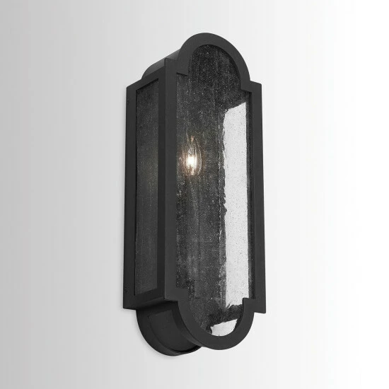 This 1-light outdoor wall lantern from the Monroe collection, features a black finish that complements many traditional and transitional outdoor decors. The clean lines of the aluminum frame add interest while the antiqued glass panels provide a unique look to the light enhancing many outdoor decors.