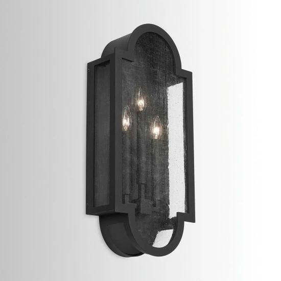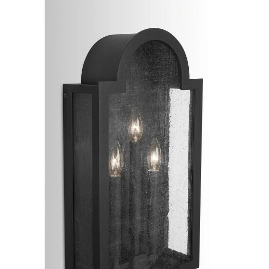 This 3-light outdoor wall lantern from the Monroe collection, features a black finish that complements many traditional and transitional outdoor decors. The clean lines of the aluminum frame add interest while the antiqued glass panels provide a unique look to the light enhancing many outdoor decors.