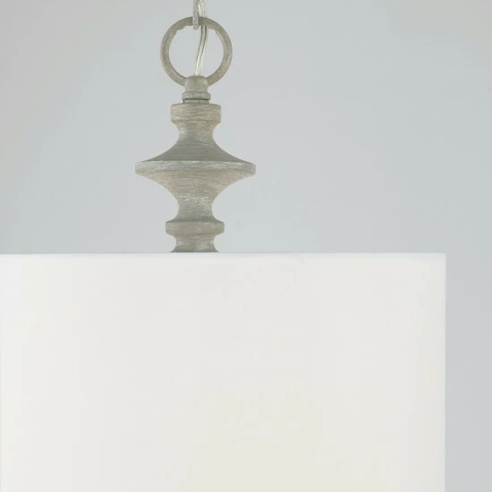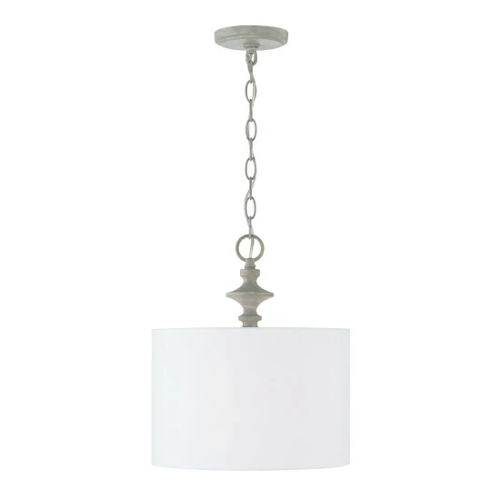 Sweet and sophisticated, the Penelope collection 1-light pendant is the perfect blend of Parisian chic and rustic romance. The fabric drum shade adds a tailored touch to the layers of visual interest created by the distressed Painted Grey finish.