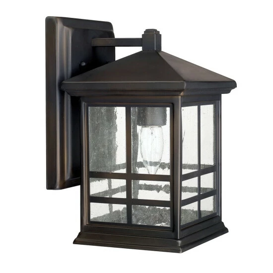 This Preston collection 1-light outdoor wall lantern features an old bronze finish that will complement many mission and transitional decors. The white faux alabaster glass panels add interest and will provide a whole new look to your outdoor d?cor. Capital Lighting is a family owned business just outside Atlanta, Georgia. We pride ourselves by delivering high quality products at affordable pricing. Beginning with design concepts from popular home fashions, we transform our ideas into lighting fixtures that blend timeless beauty with today’s styling. From casting and forging to the hand painted finishes and fine details we strive to make our products the finest in the industry. Dimensions: 11.75 inches high x 7 inches wide x 8.5 inches deep.