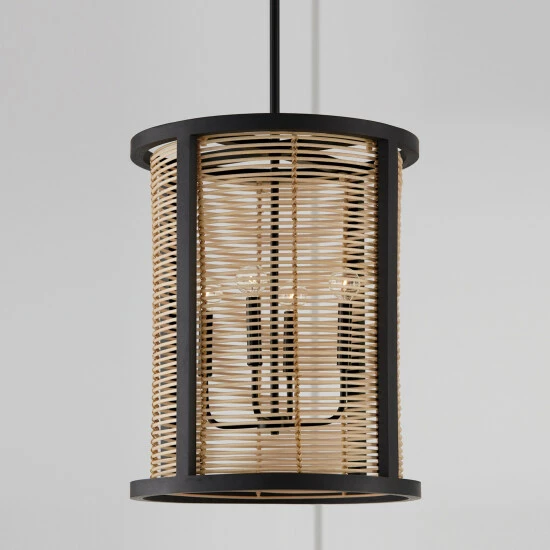 Modern flair meets timeless style with the Rico foyer pendant. The organic elements of mango wood in a Flat Black finish paired with hand-arranged rattan creates a look with classic charm with artisan appeal.