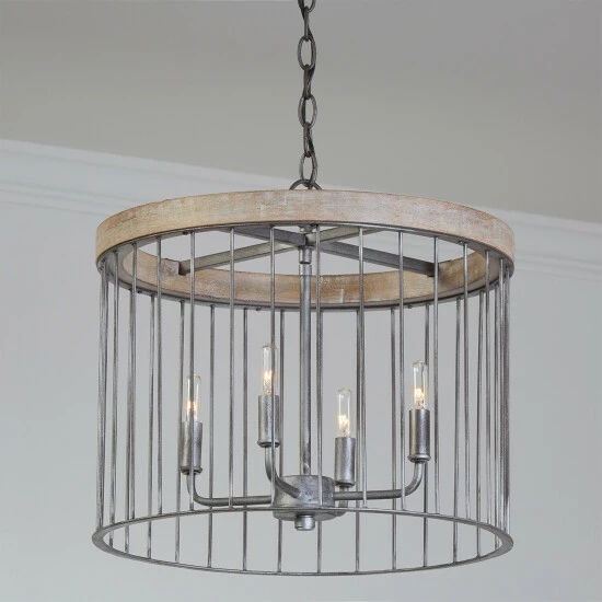 This 4-light hanging pendant from the Russell collection, features a beautifully hand painted urban wash finish that will complement many industrial, farmhouse, rustic, and transitional decors throughout your home. The clean lines of the metal frame add interest while the exposed bulb provides uninterrupted light for many spaces.