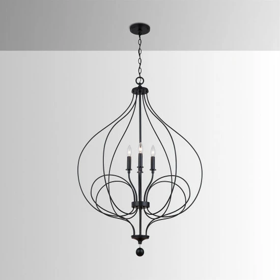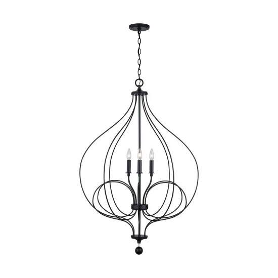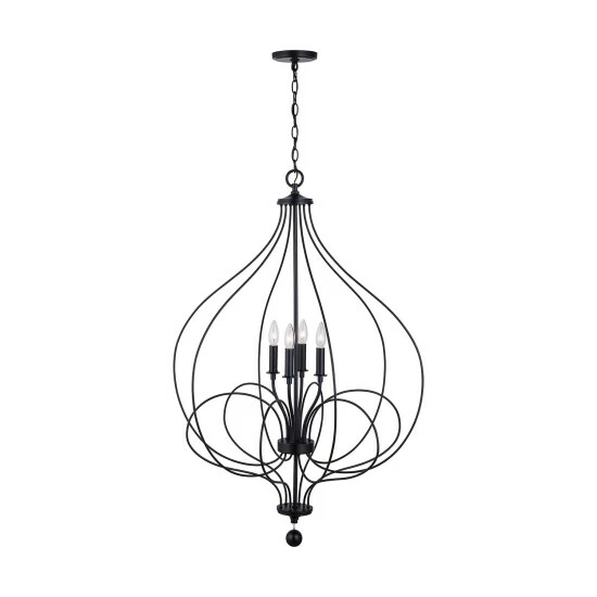 This 4-light foyer pendant from the Sonnet collection, features a beautifully hand painted matte black finish that will complement many transitional decors throughout your home. The clean lines of the metal frame add interest while the exposed bulbs provide uninterrupted light for many spaces.
