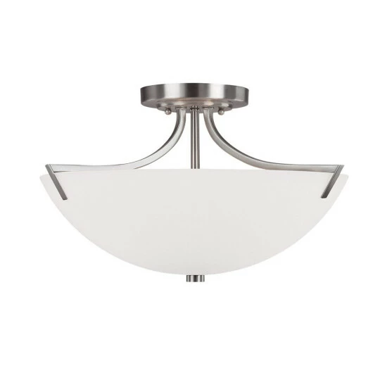This Stanton collection 3-light semi flush mount features a brushed nickel finish that will complement many classic and traditional decors. The frosted white glass shade softens the light and completes the look of this piece. Capital Lighting is a family owned business just outside Atlanta, Georgia. We pride ourselves by delivering high quality products at affordable pricing. Beginning with design concepts from popular home fashions, we transform our ideas into lighting fixtures that blend timeless beauty with today’s styling. From casting and forging to the hand painted finishes and fine details we strive to make our products the finest in the industry. Dimensions: 10 inches high x 17 inch diameter.