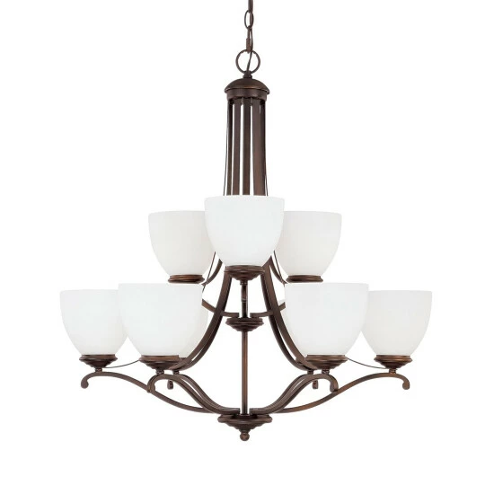 This Stanton collection 5-light chandelier features a beautifully hand painted burnished bronze finish that will complement many traditional decors throughout your home. The Stanton chandelier flaunts a beautiful, transitional silhouette that includes a shapely center column and curving arms. Cloche-style, soft white glass shades perched atop the arms diffuse the glow this chandelier casts. The frame finished in burnished bronze lends striking contrast and timeless style that could be coordinated with transitional, traditional or classic decor.