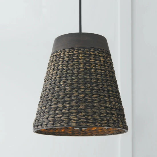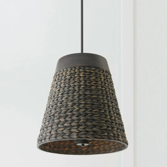 The soft style and timeless texture create the Tallulah Medium Pendant. The classic cone silhouette is given a fresh transformation with the hand-braided water hyacinth and band of mango wood. The light tones of the Chalk Wash or dark tones of the Charcoal Wash finishes add dimension and sophistication to any space.