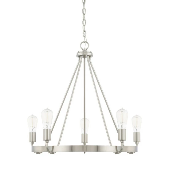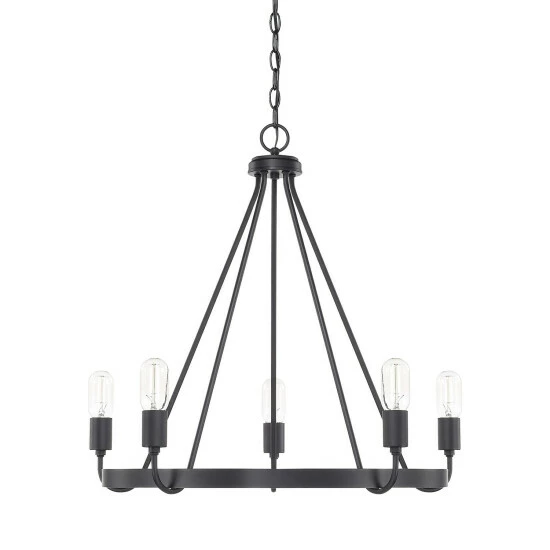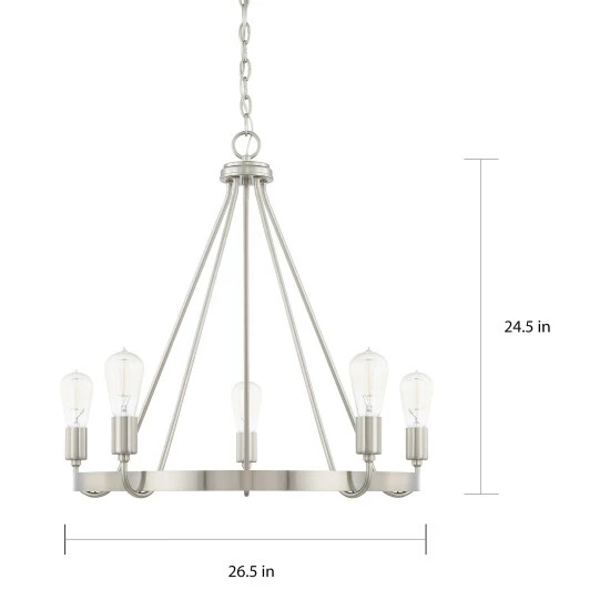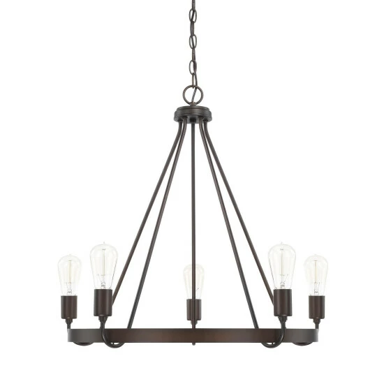 Rustic farmhouse flair meets modern ingenuity with this graceful chandelier. Your choice of bold and robust finishes makes for blending with absolutely any decor. Exposed bulbs provide ample light to any space.