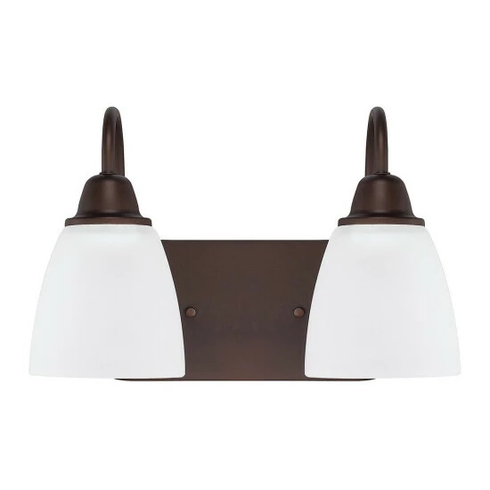 This 2-light bath/vanity fixture from the Trenton collection features a bronze finish that will complement many transitional decors. The acid washed glass shades soften the light to create a warm ambiance to any space. Dimensions: 8.5 inches high x 12.75 inches wide x 7.75 inches deep. Capital Lighting is a family owned business just outside Atlanta, Georgia. We pride ourselves by delivering high quality products at affordable pricing. Beginning with design concepts from popular home fashions, we transform our ideas into lighting fixtures that blend timeless beauty with today’s styling. From casting and forging to the hand painted finishes and fine details we strive to make our products the finest in the industry.